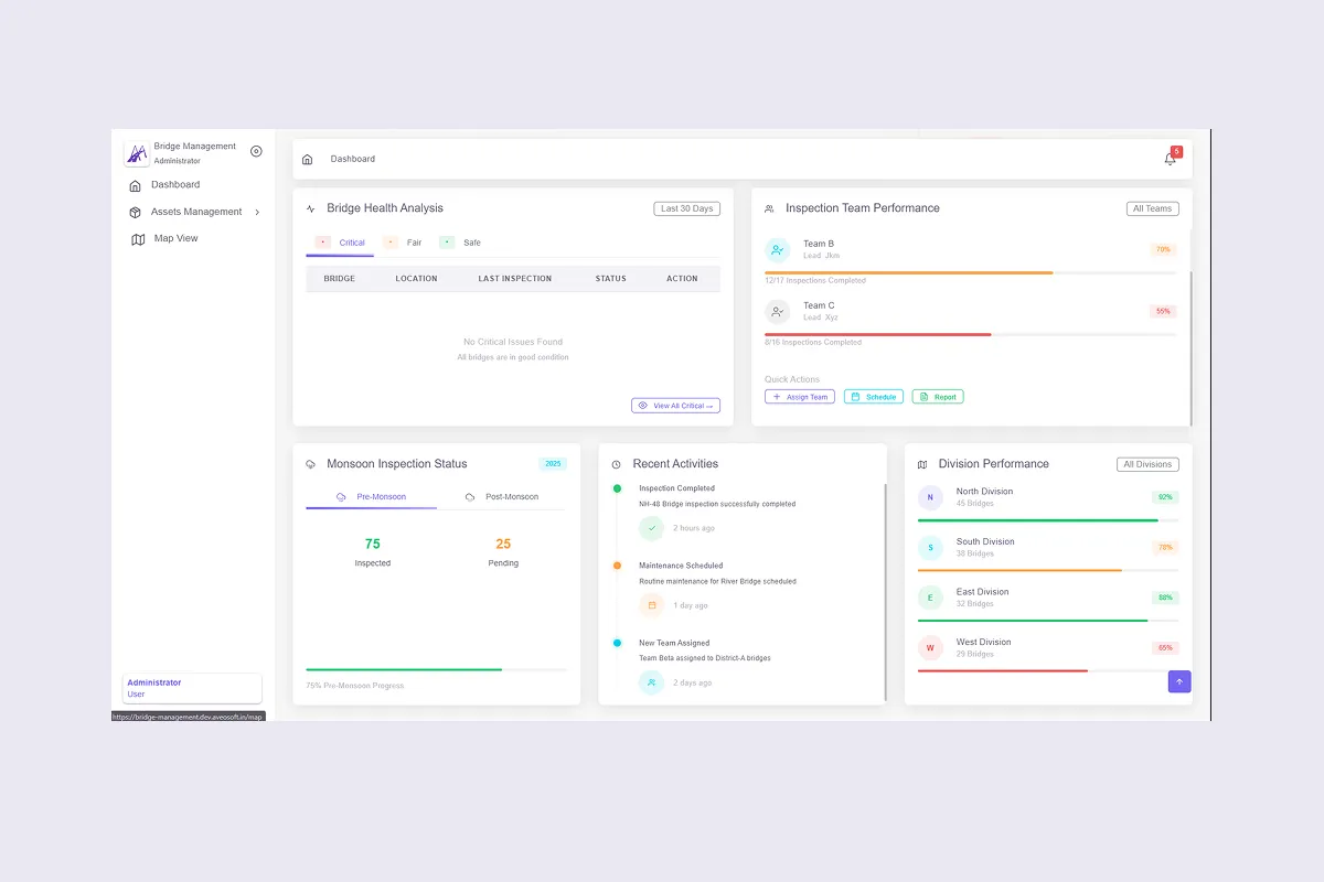 Aging bridge infrastructure with manual inspection records, reactive maintenance, and no risk-based prioritization framework.