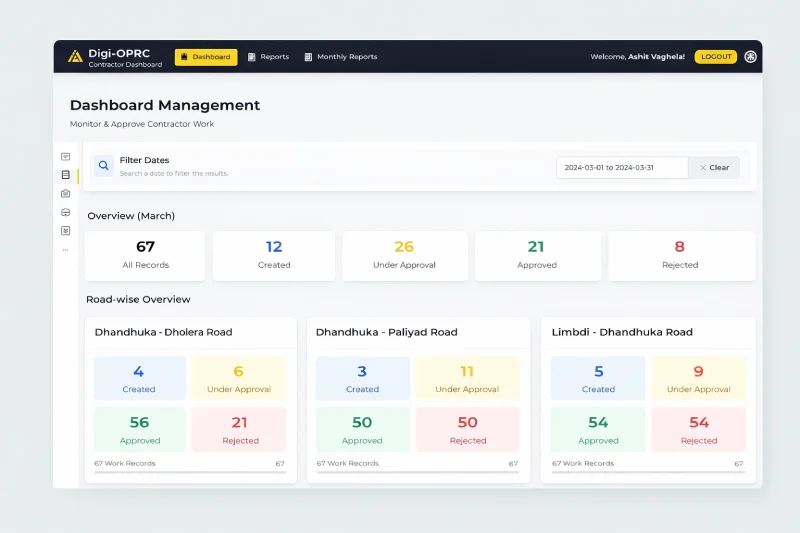 Manual road maintenance tracking with no geo-verification, delayed field reporting, and lack of real-time compliance visibility.