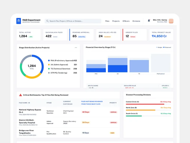 Fragmented monitoring of ₹1,00,000+ Crore infrastructure projects across 33 districts with no centralized oversight.